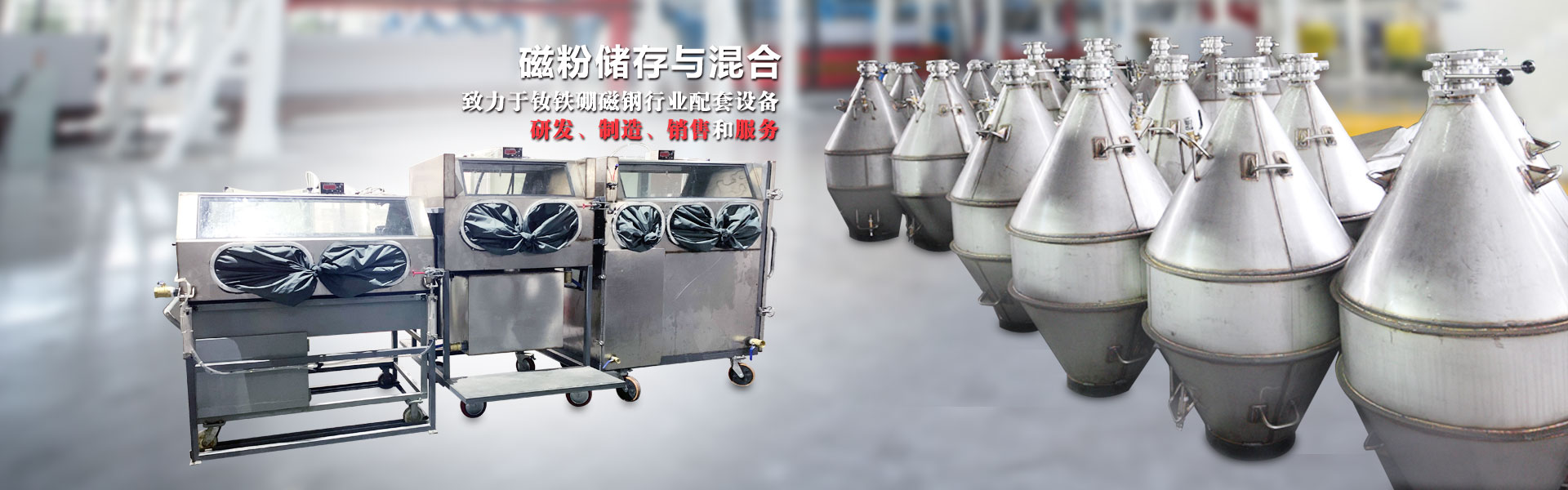 公司主要產品有全自動磁場成型壓機、半自動磁場成型壓機、磁粉自動稱量機、不銹鋼磁粉罐、進料剝料車、美式三維混粉機、雙錐混料機等,滿足磁鋼行業的需求。